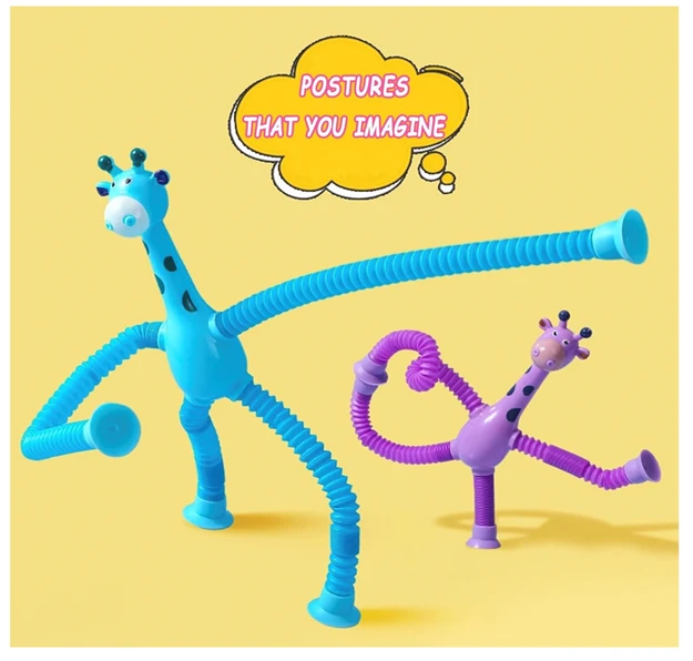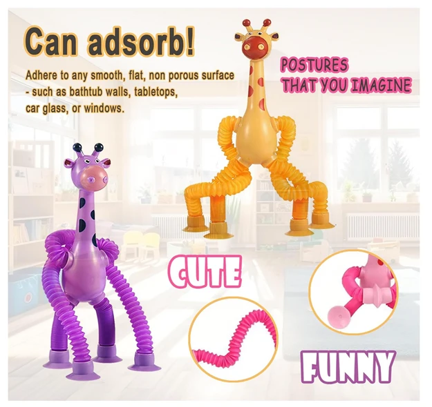 - Flexible Giraffe Figures: A set of 4 bendable plastic giraffe toys with telescopic pop tubes, designed for sensory play and fine motor skill development.