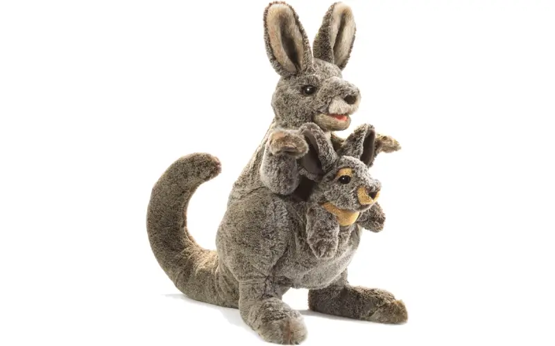 Special Features: Movable mouth and arms on mama; movable arms on joey. Removable joey puppet in pouch.