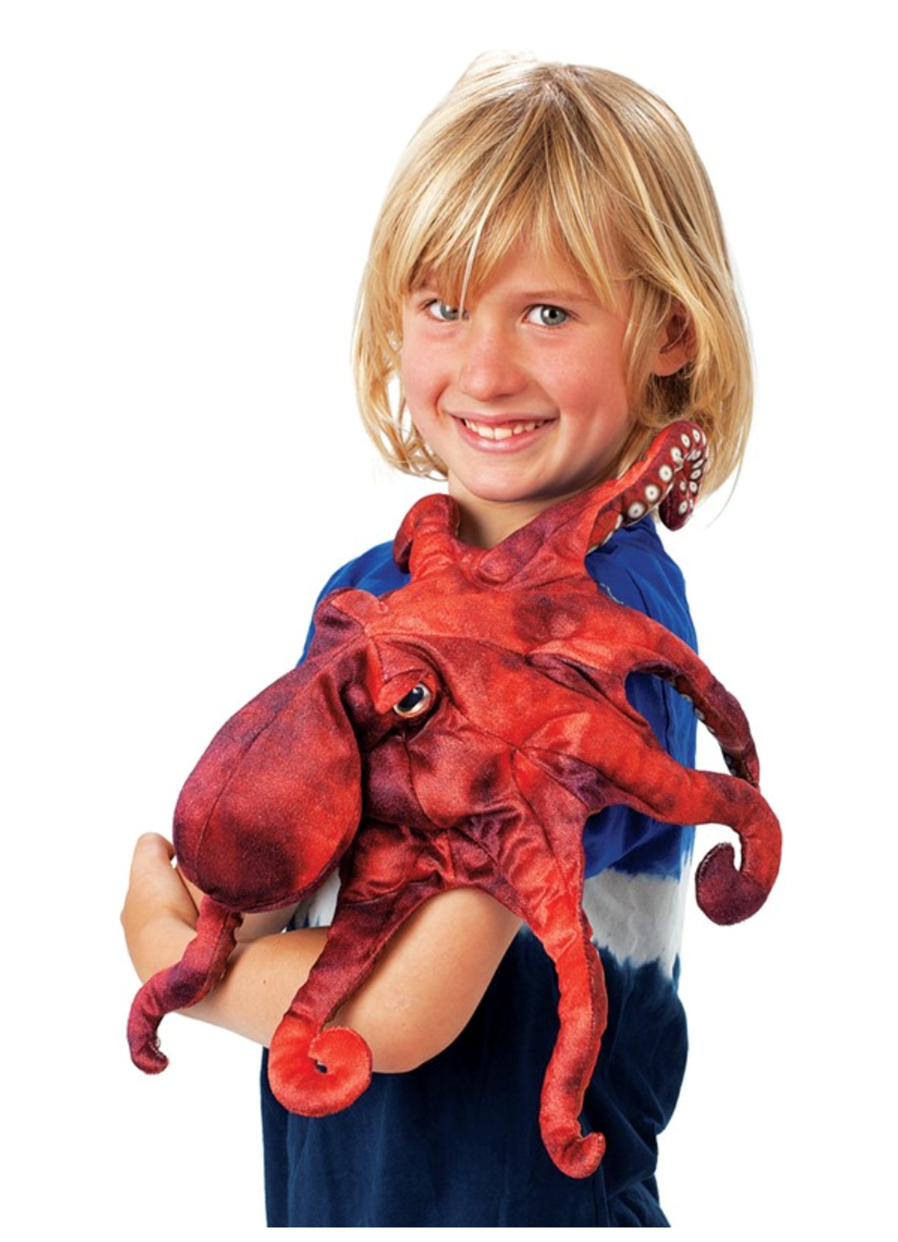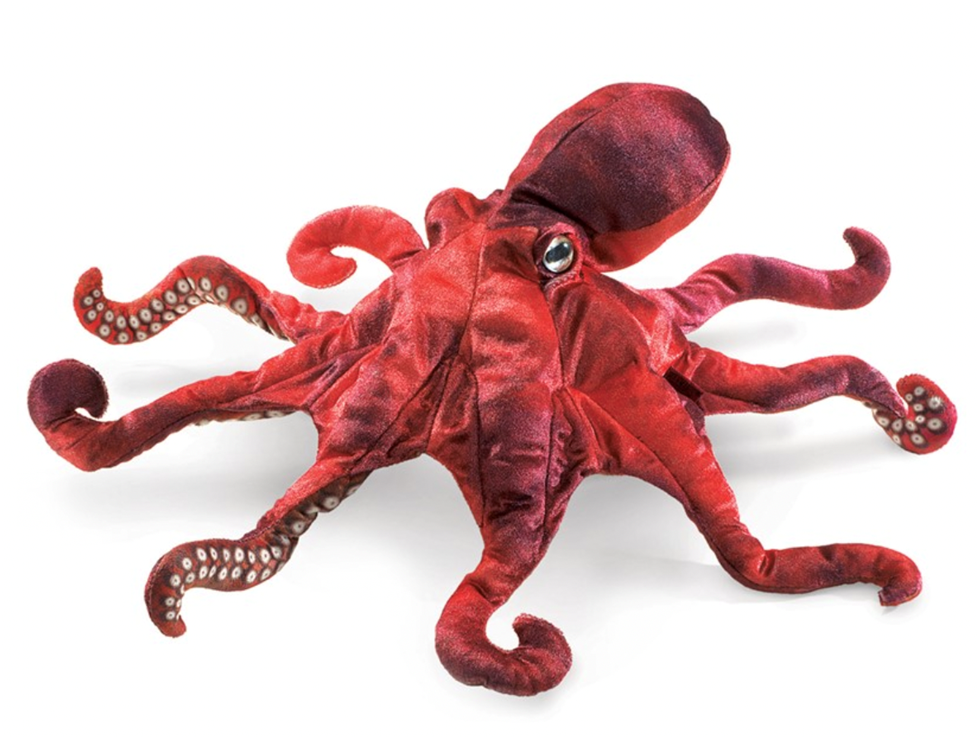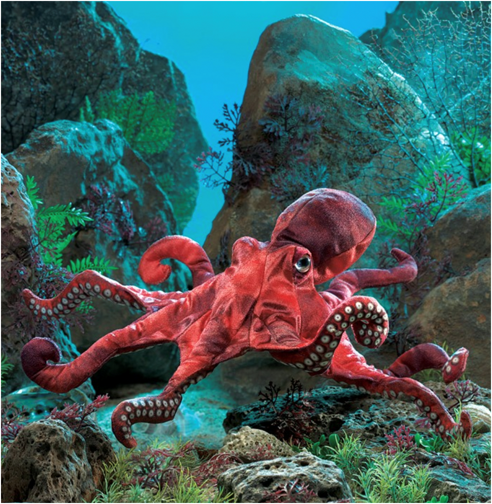 This fascinating creature is true to life with vivid coloration and eight movable arms. Each arm is operable with printed suction cups on the underside. Easy to wriggle around, the RED OCTOPUS PUPPET literally fits like a glove, instantly coming to life.