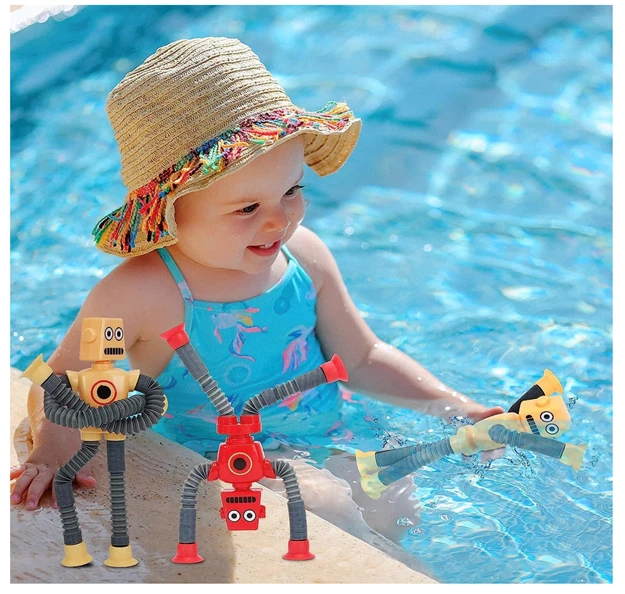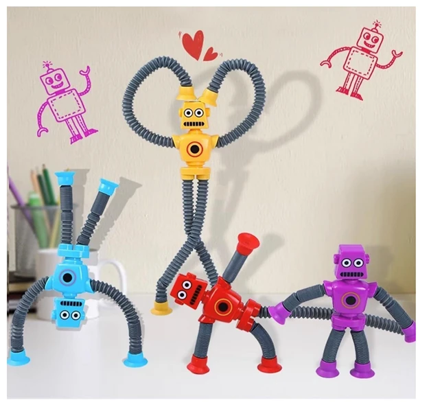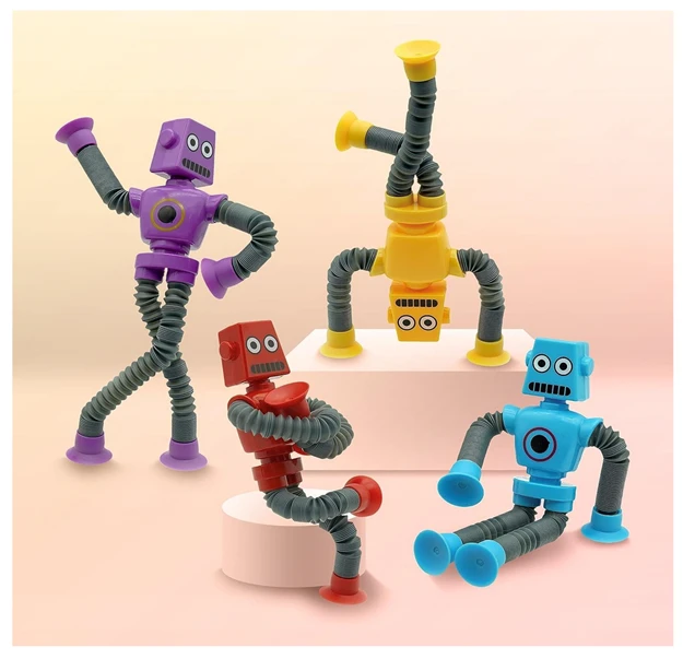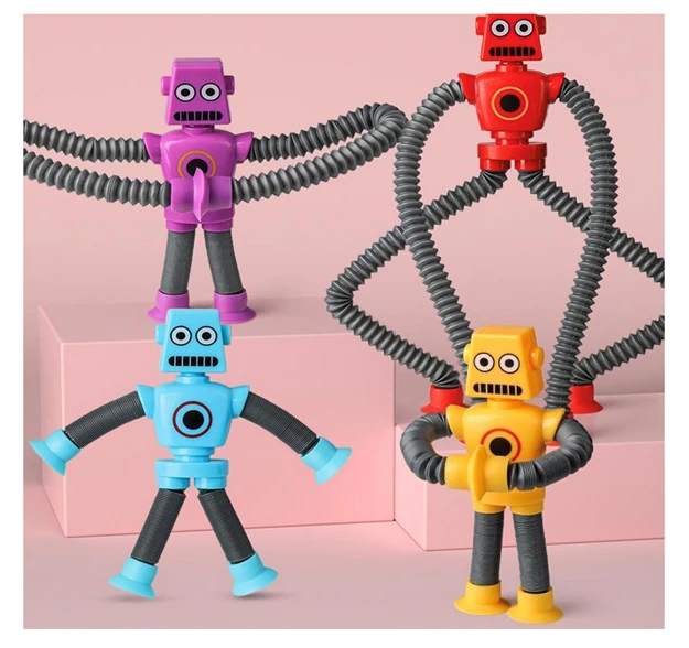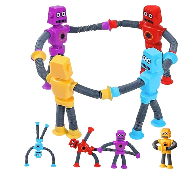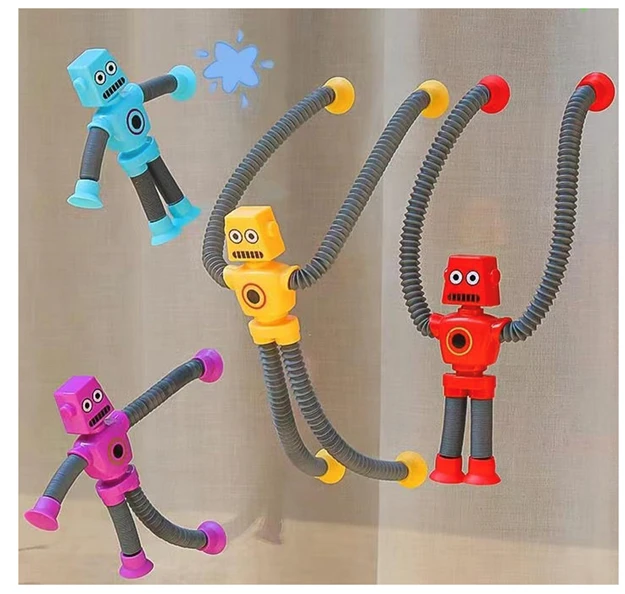 • Autism toys: Suction Cup Robot Toy are a fun and engaging sensory toy, When stretched, the tubes create a satisfying popping sound that stimulates the senses and provides a calming effect. The suction cup at the bottom allows it to be attached to smooth surfaces like mirrors, windows, and tiles. Kids can enjoy sticking it anywhere and watching it bend and twist in different directions.