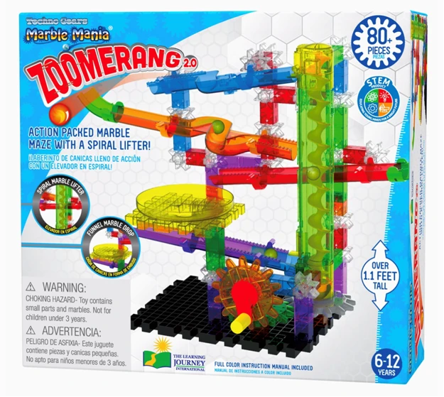 A member of the award-winning Techno Gears Marble Mania Mini Series, the Catapult 3.0 set includes more than 80+ translucent pieces to build and create your own marble and gear run. Once completed, the spring-loaded shooter launches the marble to the top of the build where the track and the fun begin. This unique construction set aligns with and supports STEM (Science, Technology, Engineering, and Math) standards and boosts confidence in the young ones who accept the rewarding challenge to build it! Recommended for ages 6+ years.